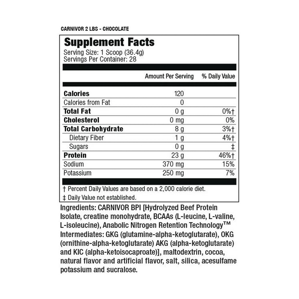 Первый в мире 100% изолят говяжьего протеина! Биоинженерный изолят говяжьего протеина CARNIVOR обеспечивает наращивание мышечной массы с высоким уровнем аминокислот. Содержит на 350% больше анаболических аминокислот, чем филейный стейк, без жира или холестерина. Эксклюзивная технология ANRT позволяет повторно использовать аминокислоты для увеличения мышечного роста. Каждая порция содержит в 20 раз больше креатина, усиливающего объем мышц. Дополнительно добавлены ВСАА для поддержания азотного баланса и увеличения производительности.